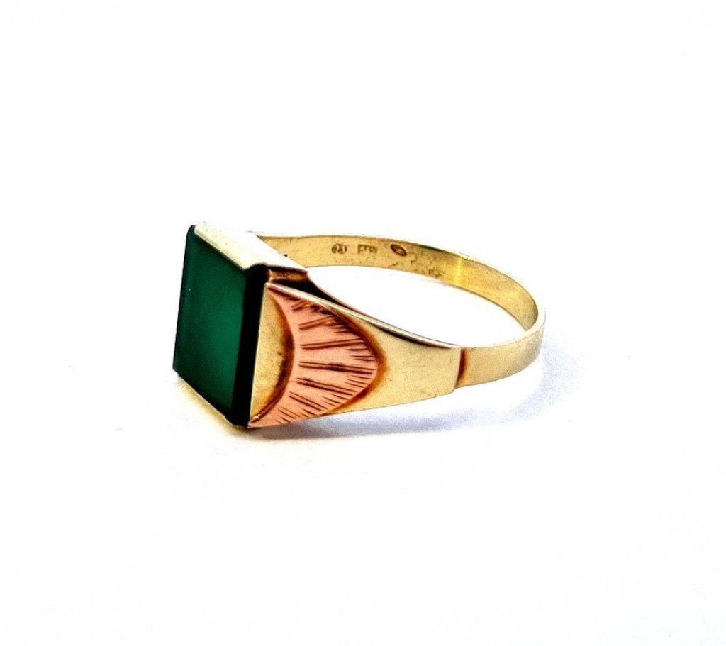 Pánský zlatý prsten se zeleným kamenem, chryzopras, vel. 68