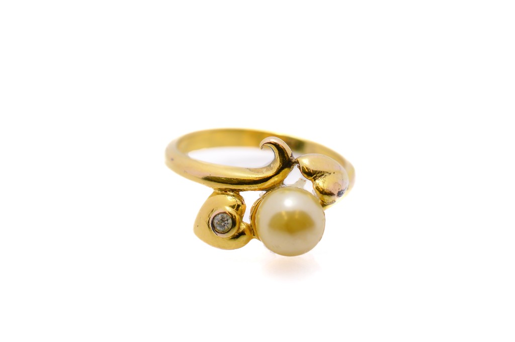 Pozlacený stříbrný prsten s perlou, vel. 55