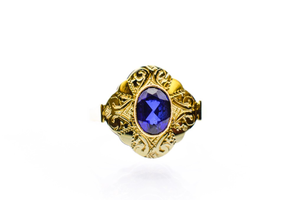 Starožitný prsten s modrým kamenem – safír, vel. 55