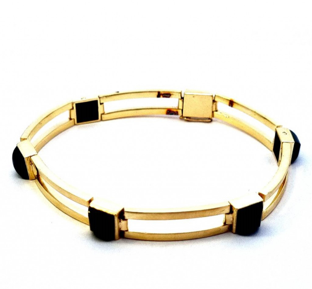 Starožitný zlatý náramek s onyxem, první republika, 12,43 g