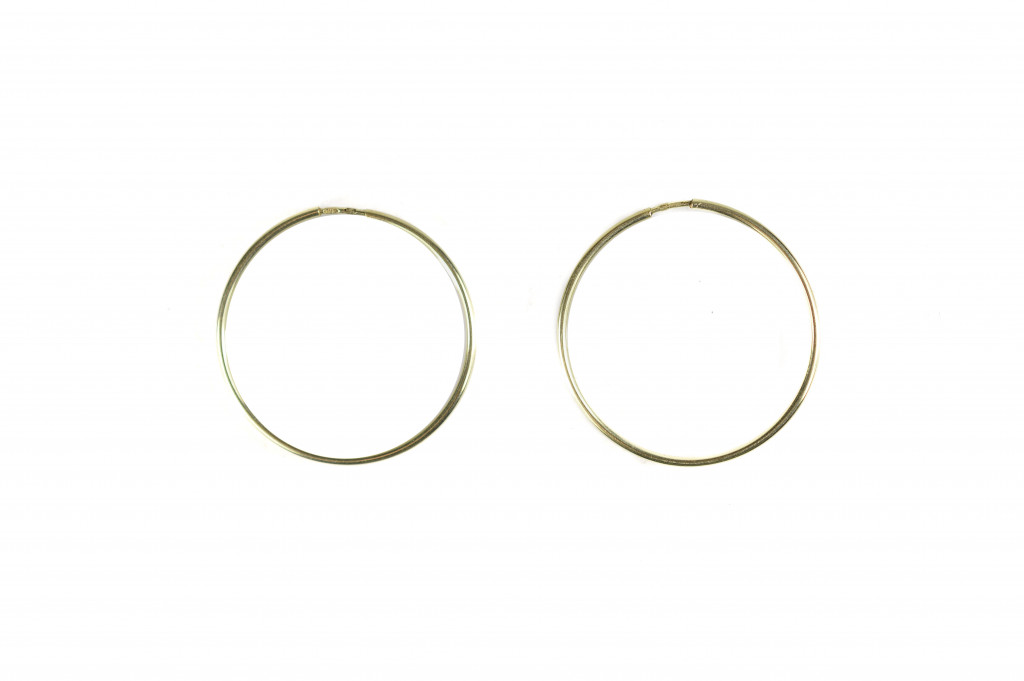 Zlaté náušnice o ryzosti 585/1000, punc labuť. Váha 1,31 g, průměr 29,5 mm, šířka 1 mm.