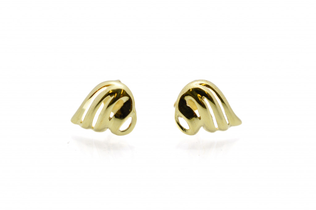 Zlaté náušnice o ryzosti 585/1000, punc čejka. Váha 2,06 g, rozměry ozdoby 13 x 10 mm.