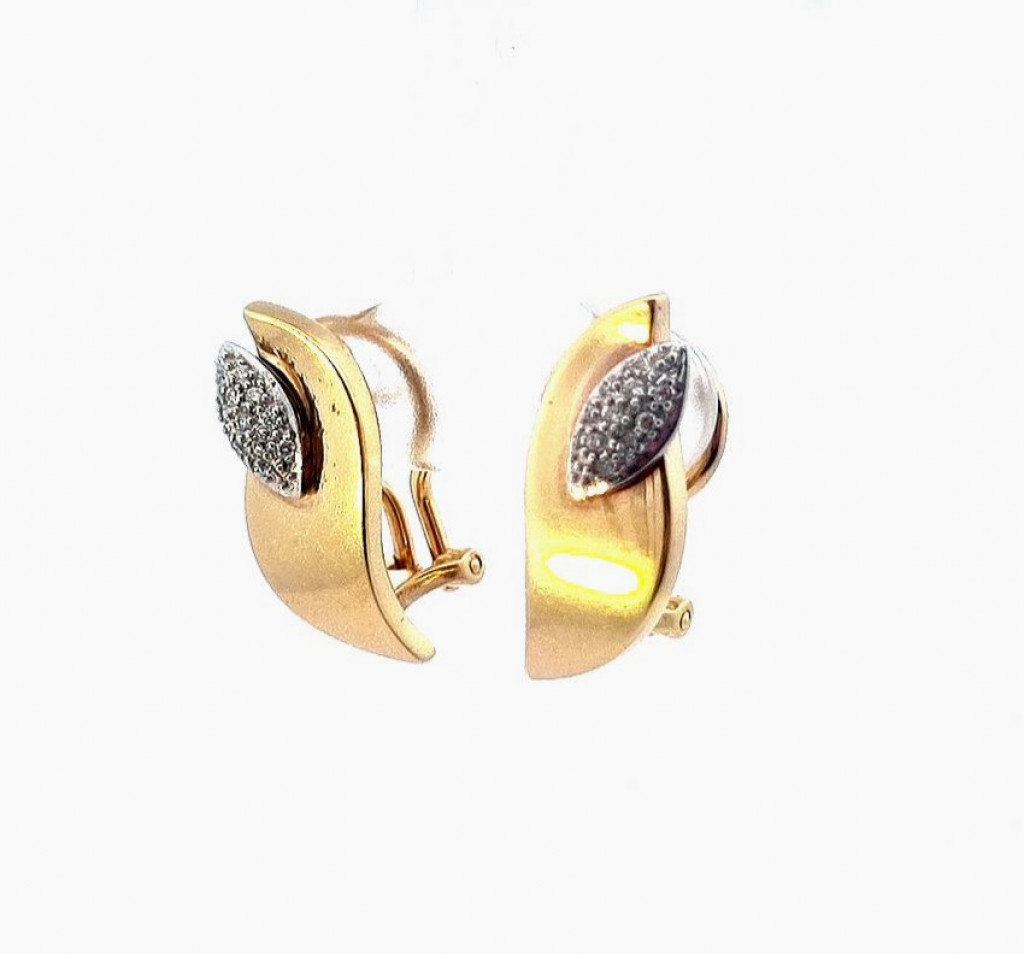 Zlaté náušnice o ryzosti 585/1000, punc labuť. Váha 6,78 g, výška 21 mm, 9 mm. Kámen - přírodní diamant briliantového brusu - celkem 22 ks, dohromady cca 0,05 ct.