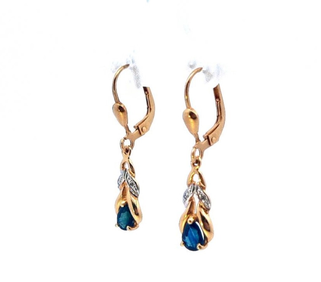 Zlaté náušnice se safíry a diamanty, visací