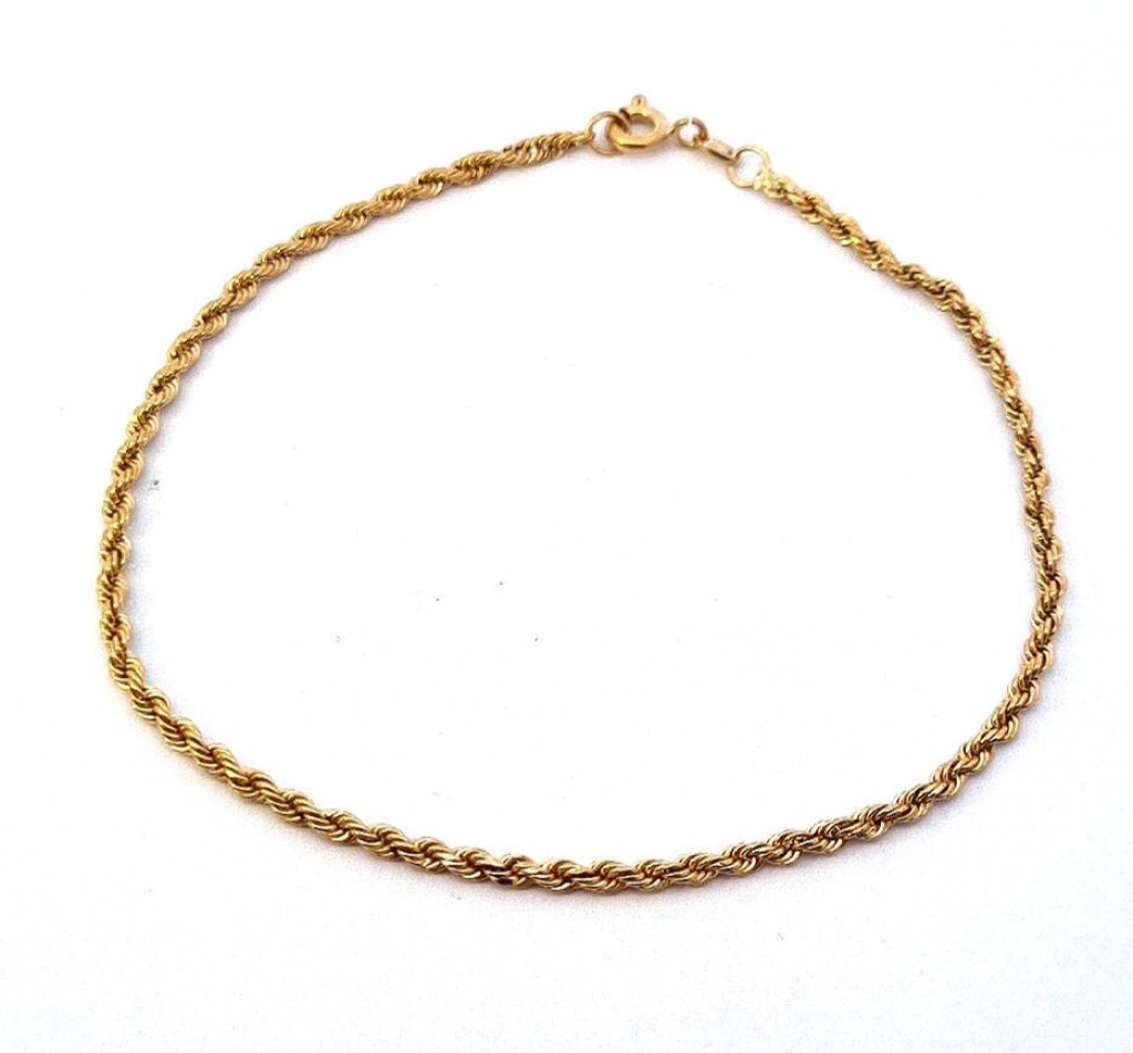 Zlatý náramek o ryzosti 750/1000, punc kohout. Váha 1,27 g, délka 19 cm, šířka 2 mm.