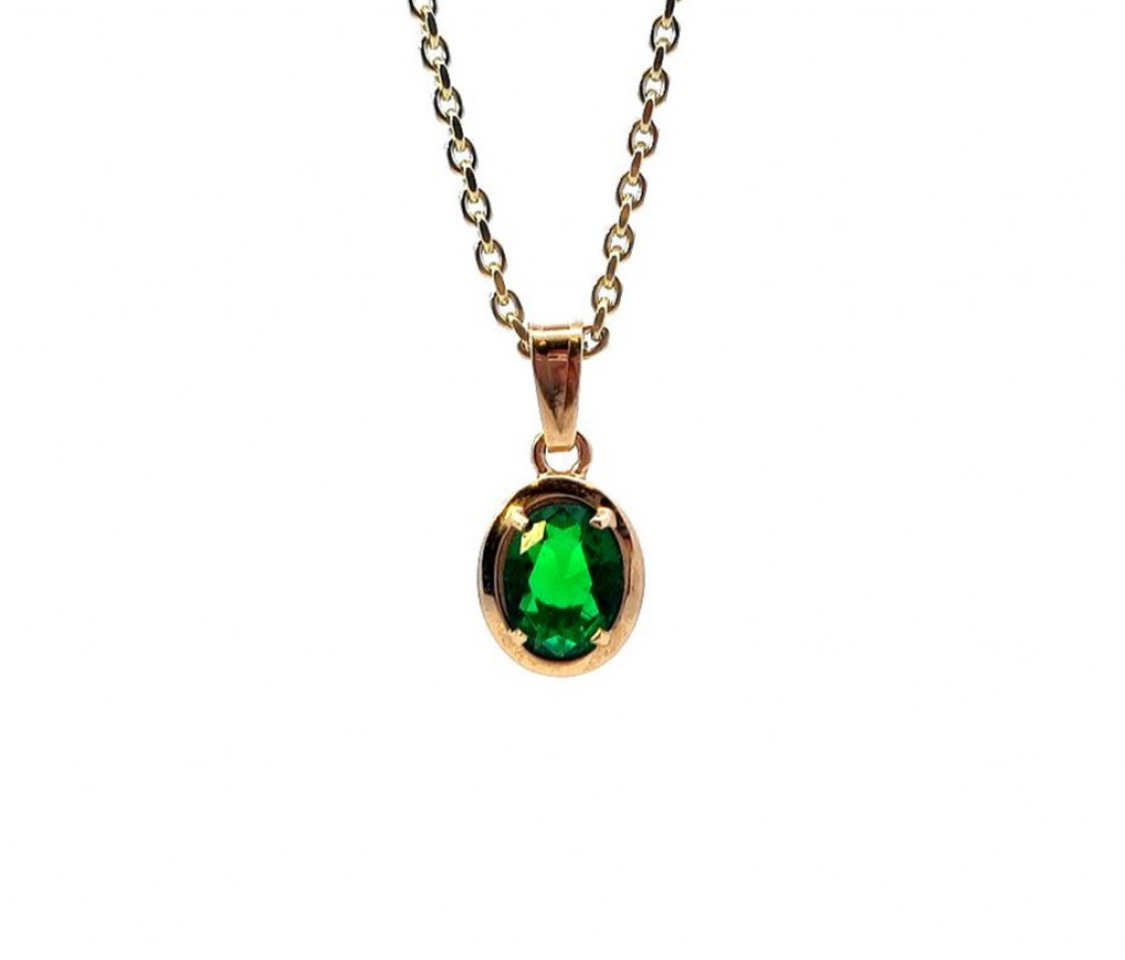Zlatý přívěs o ryzosti 585/1000, punc labuť. Váha 1,11 g, výška včetně očka 18 mm, v nejširším bodě 8,5 mm.