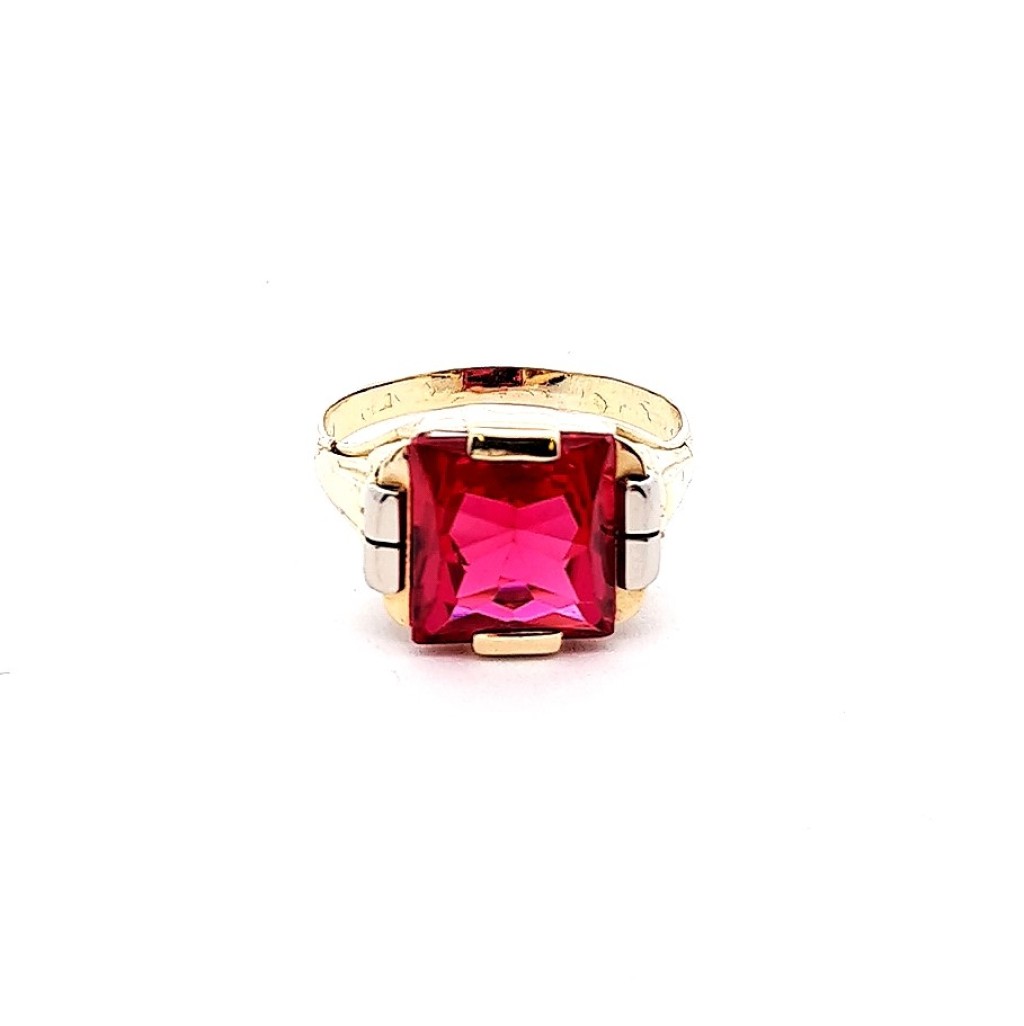 Zlatý prsten s červeným kamenem, rubín, vel. 58