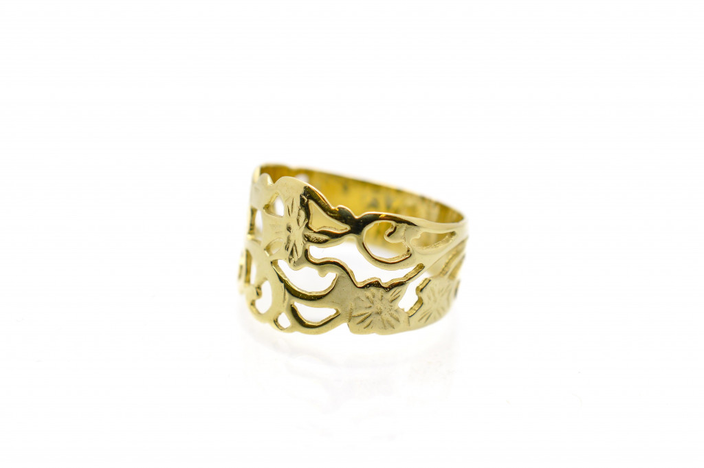 Zlatý prsten s florálním motivem, vel. 50