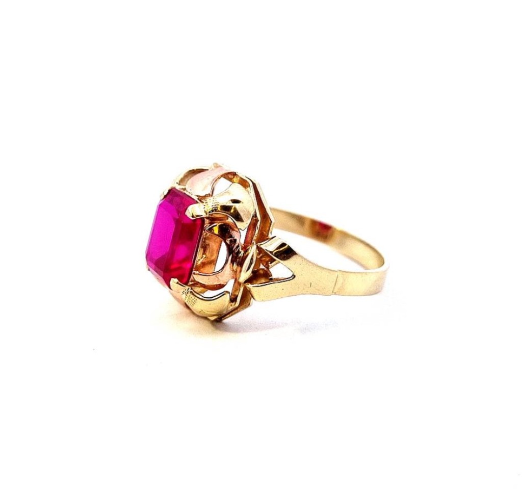 Zlatý prsten s růžovým kamínkem, rubín, vel. 57