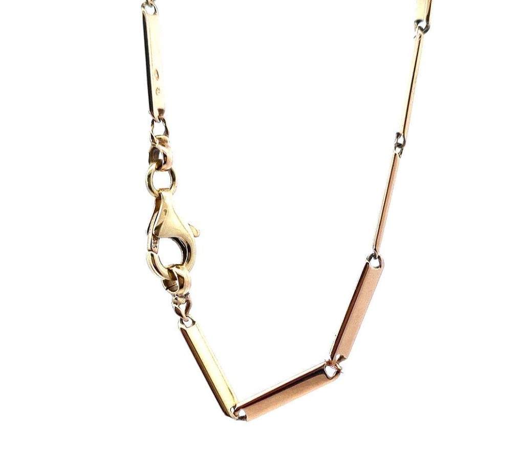Zlatý řetízek o ryzosti 585/1000, punc čejka. Váha 16,16 g, délka 40 cm, šířka 3 mm.