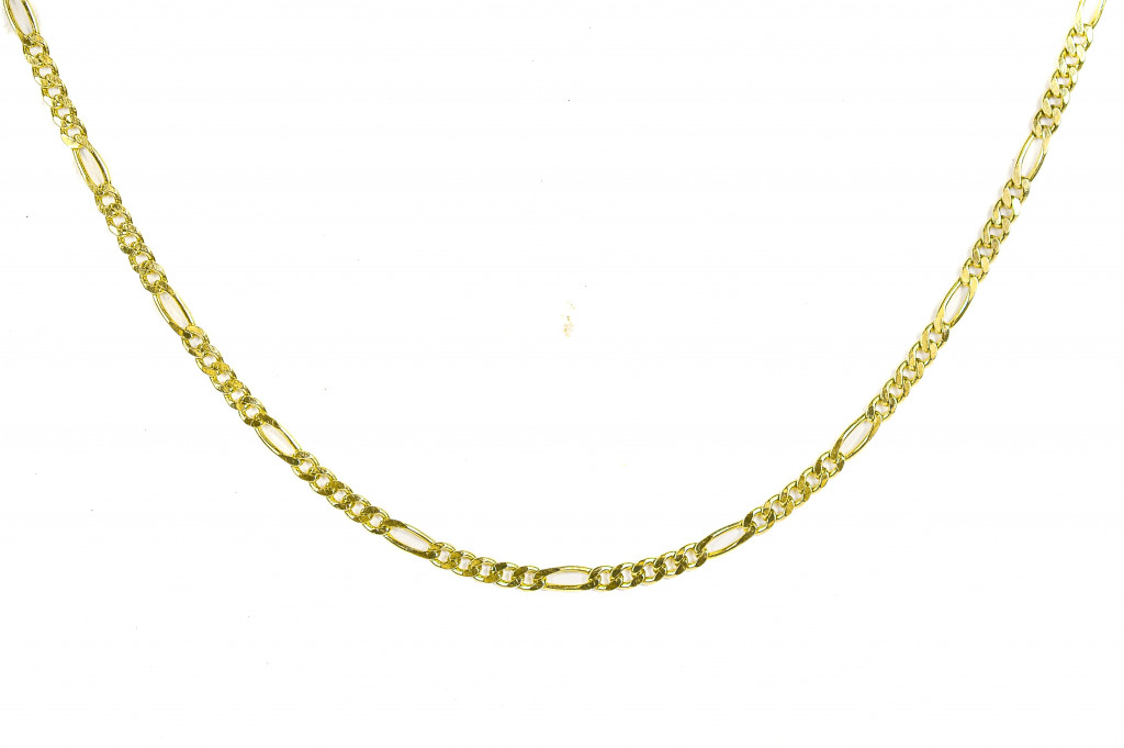 Zlatý řetízek o ryzosti 585/1000, punc labuť. Váha 6,36 g, délka 52 cm, v nejširším bodě 2 mm.