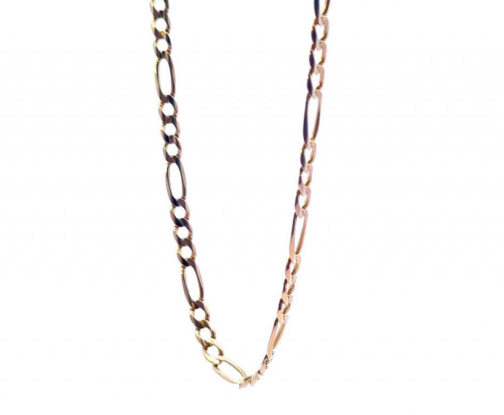 Zlatý řetízek o ryzosti 585/1000, punc labuť. Váha 7,95 g, délka 60,5 cm, šířka 3 mm.
